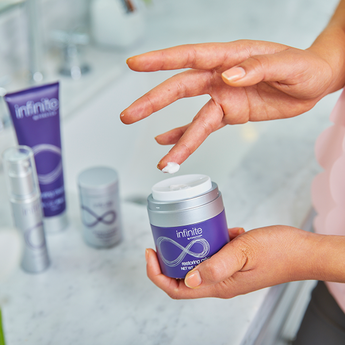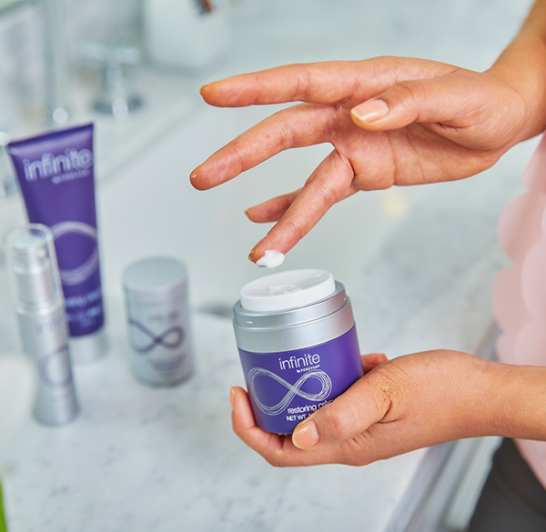 Με πάνω από 15 συστατικά που περιποιούνται το δέρμα, η Infinite Restoring Creme απορροφάται από το δέρμα, αφήνοντάς το ενυδατωμένο και απαλό. Η αλόη, το ακάι, το ρόδι και ένα μείγμα αιθέριων ελαίων ανανεώνουν και αναζωογονούν το δέρμα.